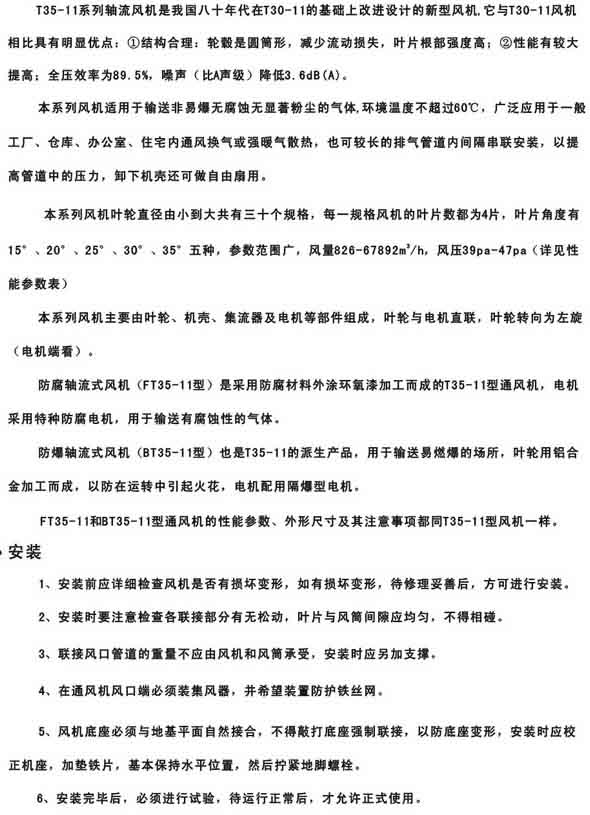 1、HTF型消防高温排烟风机 2、HTF(PYSWF)型高温排烟混流风机 3、HTFC消防通风两用柜式离心风机 二、混流通风机系列 1、SWF(HLF)型混流通风机 2、SWF-IV(HL3-2A)型低噪声节能混流通风机 3、SWF-V(SJG)型斜流(混流)通风机 4、HLF-6型低噪声节能混流风机箱 三、低噪声轴流通风机系列 1、T35-11(T40-11)型轴流通风机 2、DZ型低噪声轴流通风机 3、DFBZ型壁式轴流通风机 4、SDF型隧道式轴流通风机 5、DWEX系列边墙风机 四、屋顶通风机系列 1、DWT-I型轴流式屋顶风机 2、DWT-II(III)型离心式屋顶风机 3、DWT-IV型无动力屋顶风机 4、RTC低噪声离心式铝制屋顶风机 |